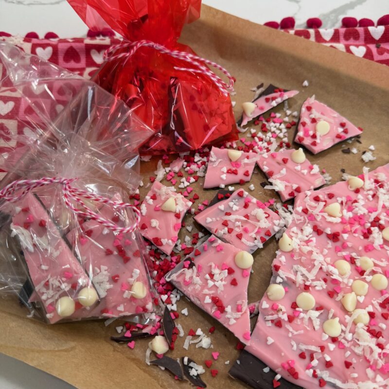 Try this super-easy chocolate bark treat for Valentine's Day! It's so festive and cute.